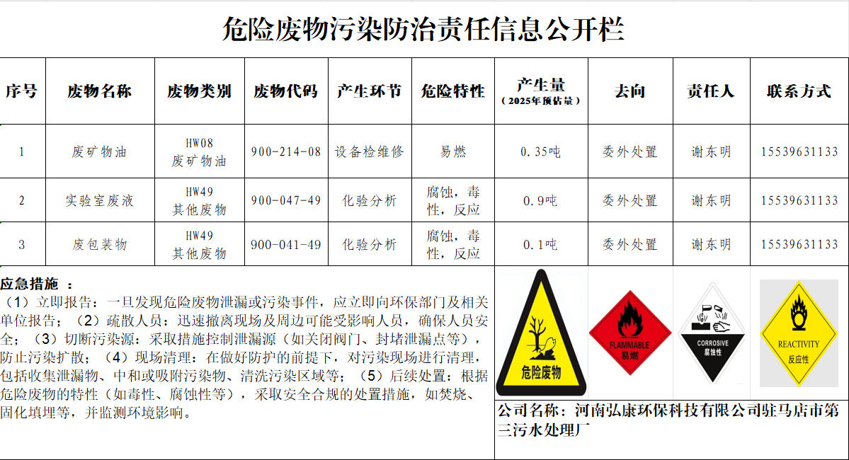 危險廢物污染防治責任信息公開欄