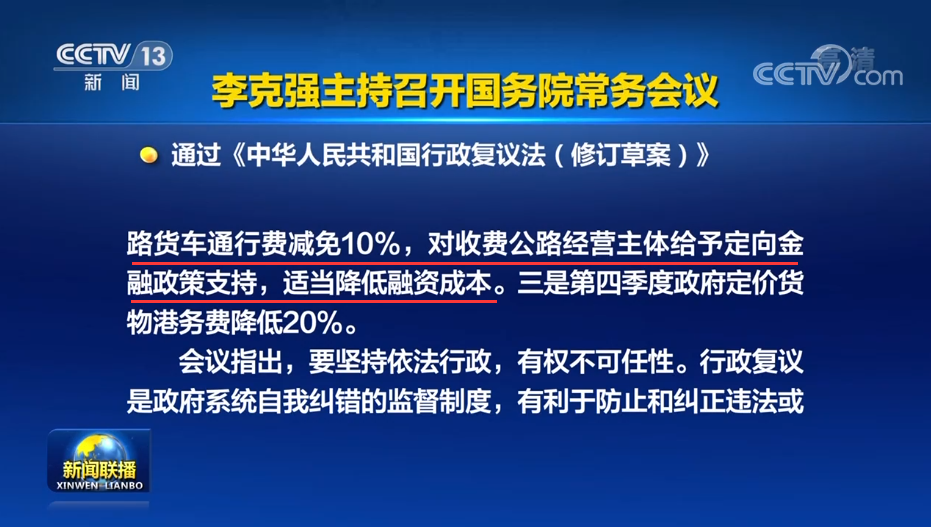 2022/09/26四季度起貨車過(guò)路費(fèi)減免10%