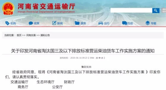 2020/06/23定了!河南:超20萬(wàn)輛國(guó)三及以下中…